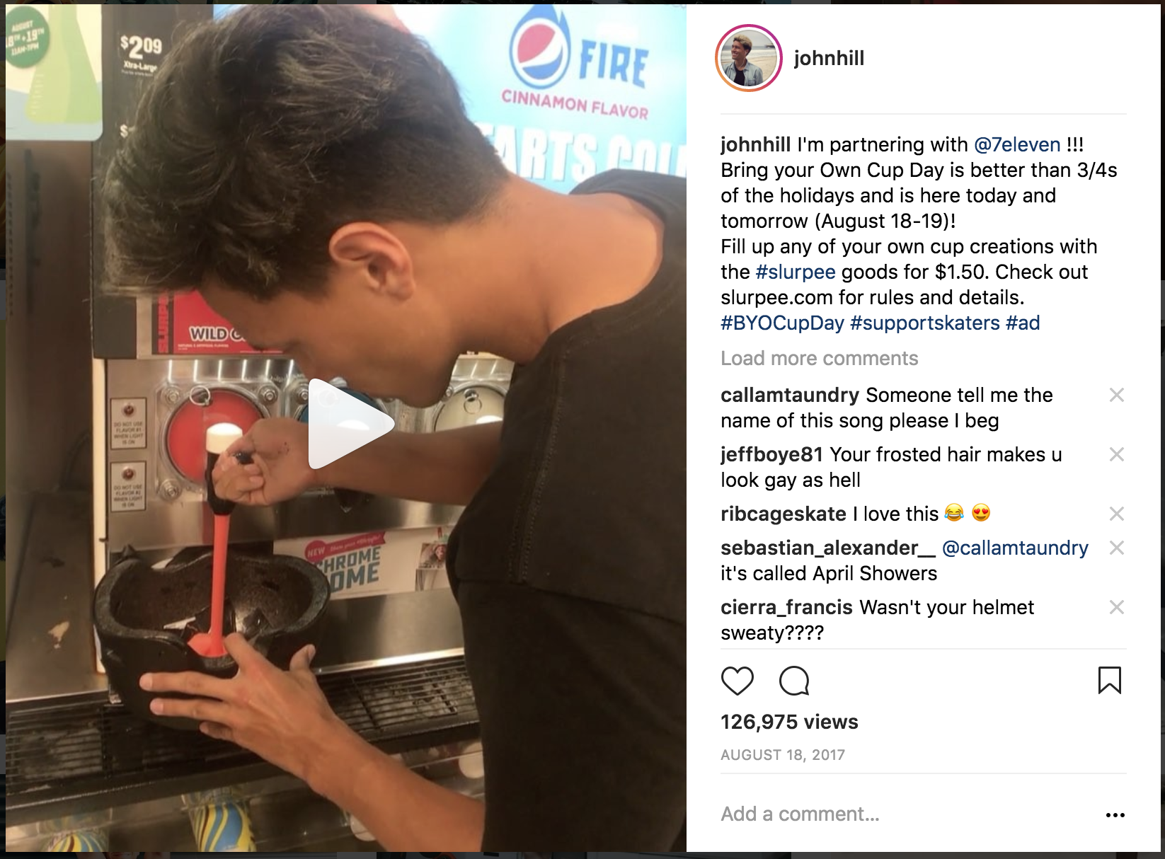 Any work that allows total creative freedom, usually produces the best results. The idea was to fill up "anything" with 7-eleven slushy. We landed on a somewhat shocking approach, using my helmet as the cup.
